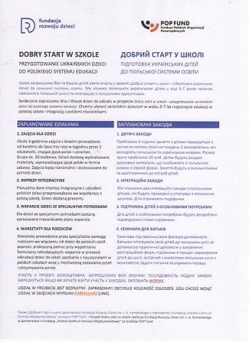 Dobry start w szkole - przygotowanie ukraińskich dzieci do polskiego systemu edukacji.