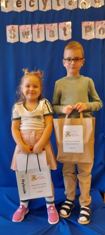 Z radością spieszymy z informację, iż Wanda z gr . "Smoki" zajęła 2 miejsce w Konkursie Recytatorskim "Magiczny świat poezji", który odbył się w Przedszkolu nr 22 w Rybniku. W tym samym konkursie, tyle, że w kategoriii dzieci starszych Kostek z gr. "Tygryski" zajął 3 miejsce! Gratulujemy !