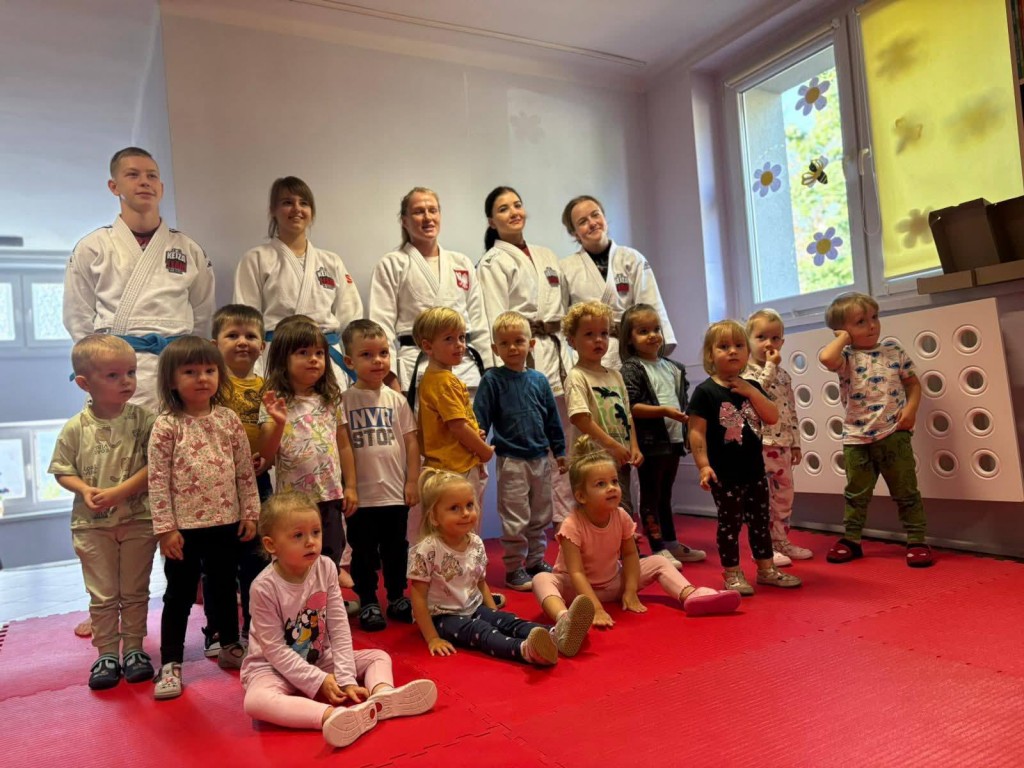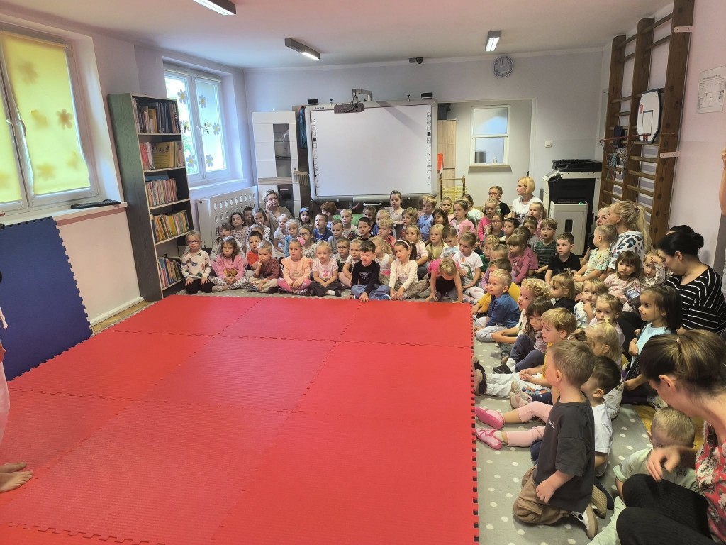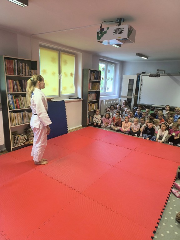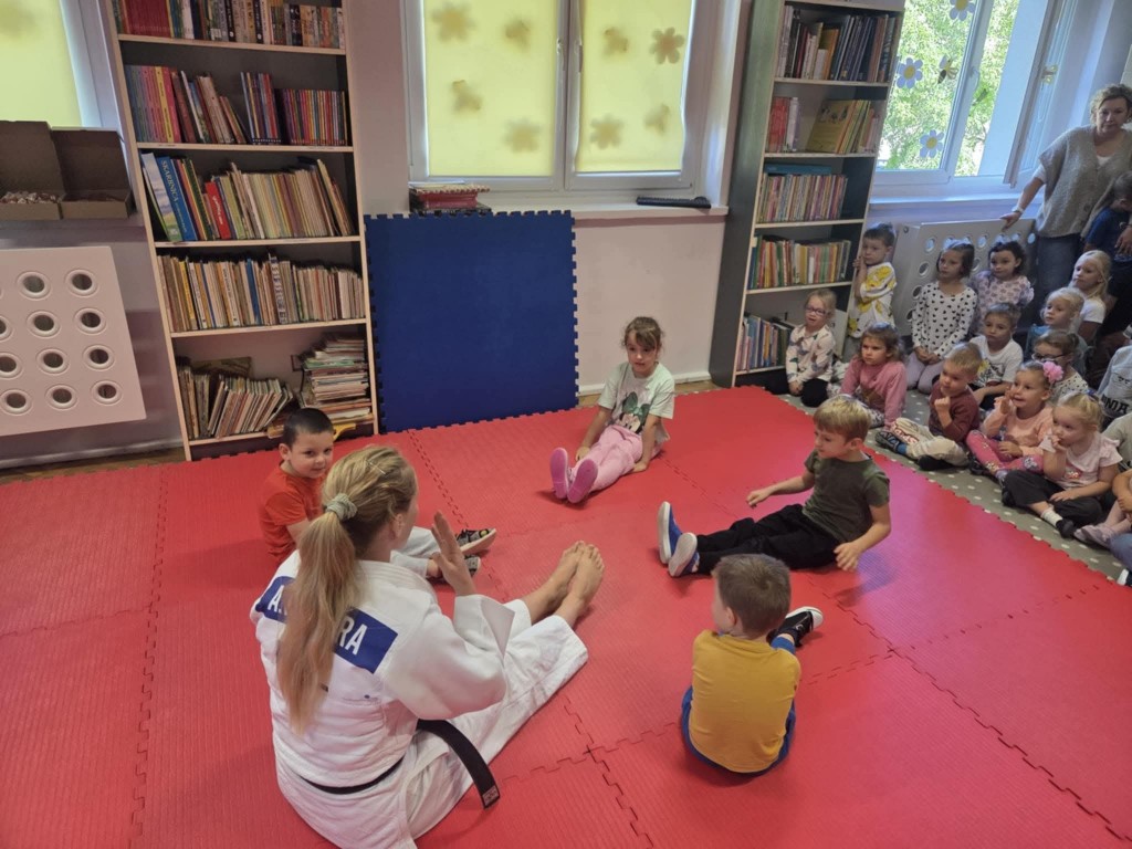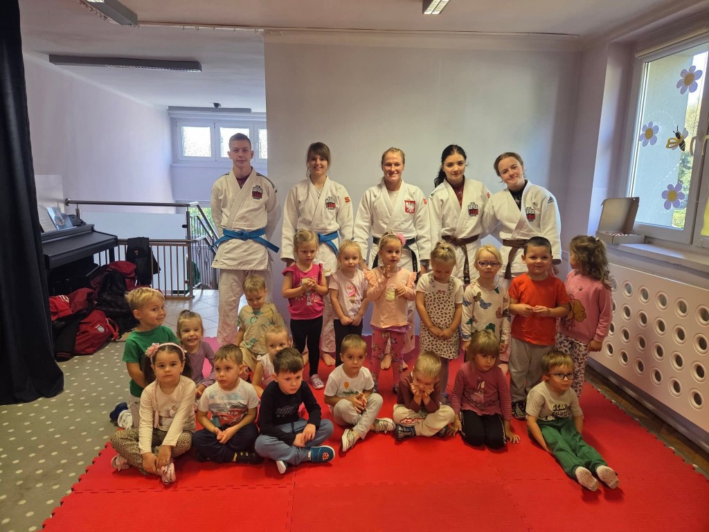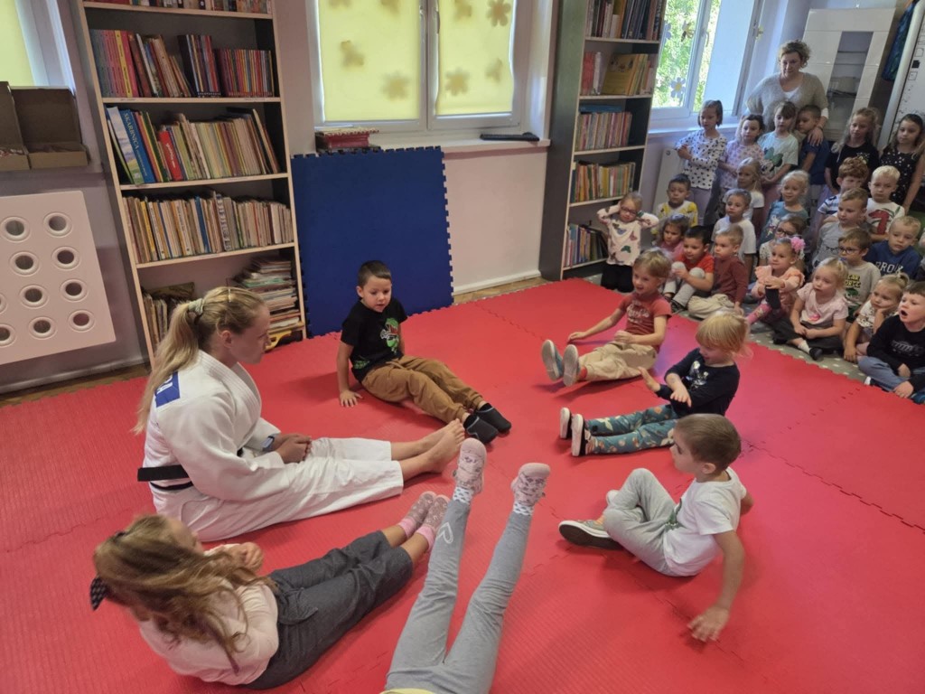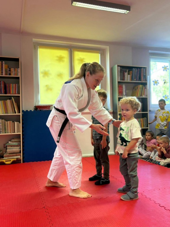 Dziś w naszym przedszkolu odbył się wyjątkowy pokaz judo, zorganizowany przez klub sportowy Kejza Team Rybnik. Zajęcia poprowadziła doświadczona trenerka Pani Anna Kuczera, która w ciekawy i przystępny sposób zaprezentowała podstawowe elementy tej dyscypliny sportu.