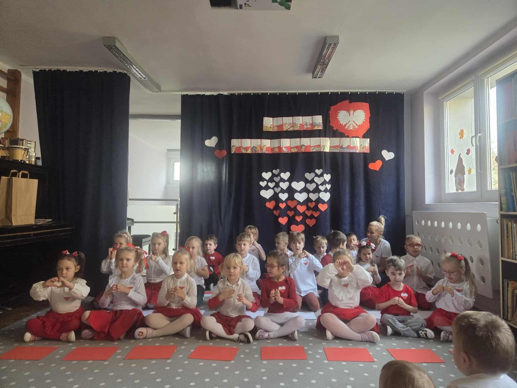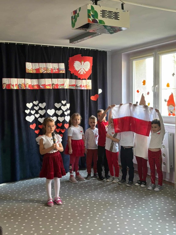 W dniu 5 listopada 2025 r. w naszym przedszkolu odbyła się uroczysta akademia z okazji zbliżającego się Narodowego Święta Niepodległości. Celem wydarzenia było kształtowanie postaw patriotycznych oraz przybliżenie dzieciom historii odzyskania przez Polskę niepodległości.