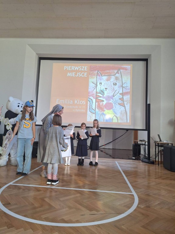 Nasi przedszkolacy - Emilia K. , Zuzia C. , Agatka oraz Franio wzięli udział w gali rozdania nagród konkursu plastycznego "Mój Pupil". Nasza Emilka zdobyła tam 1 miejsce, co jest naprawdę dużym sukcesem, ponieważ w konkursie oceniono 167 prac. Praca konkursowa Franka podbiła serca osób odwiedzających bibliotekę Zespołu Szkół Urszulańskich i ta nagroda trafiła właśnie do niego. Wszystkim nagrodzonym gratulujemy ![]()