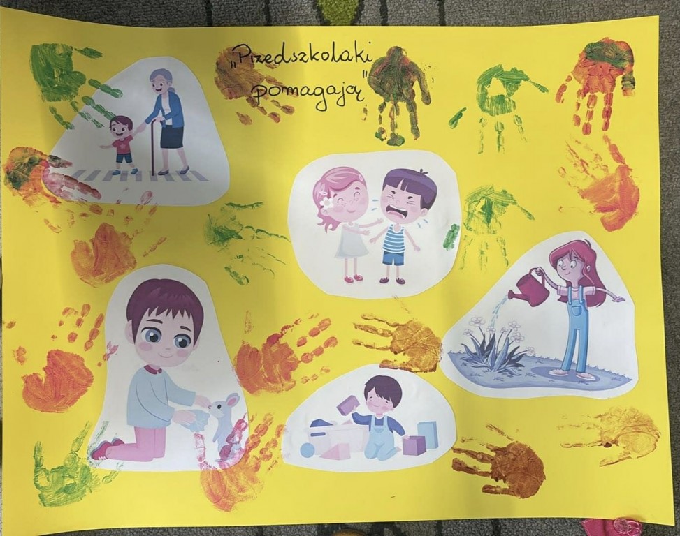 Dzieci z. grupy "Misie" aktywnie włączyły się w realizację zadania nr 1 w ramach konkursu Śląskiego Kuratora Oświaty „Bądź aktywny z Kuratorem” pod hasłem „Świadomie, społecznie, lokalnie”, tworząc wspólny plakat pt."Przedszkolaki pomagają". Działanie miało charakter zespołowy i sprzyjało rozwijaniu kreatywności, umiejętności współpracy oraz odpowiedzialności za wspólny efekt.