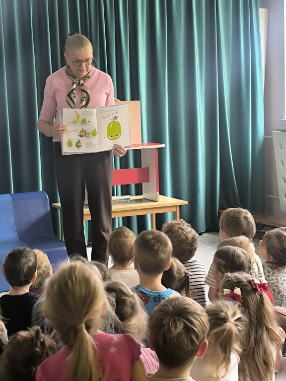 W ramach obchodów Światowego Dnia Książki (który przypada w bieżącym tygodniu) w naszym przedszkolu odbyło się wyjątkowe spotkanie z panią Mariolą z pobliskiej Filii nr 2 Powiatowej i Miejskiej Biblioteki Publicznej w Rybniku przy ul. Zebrzydowickiej.